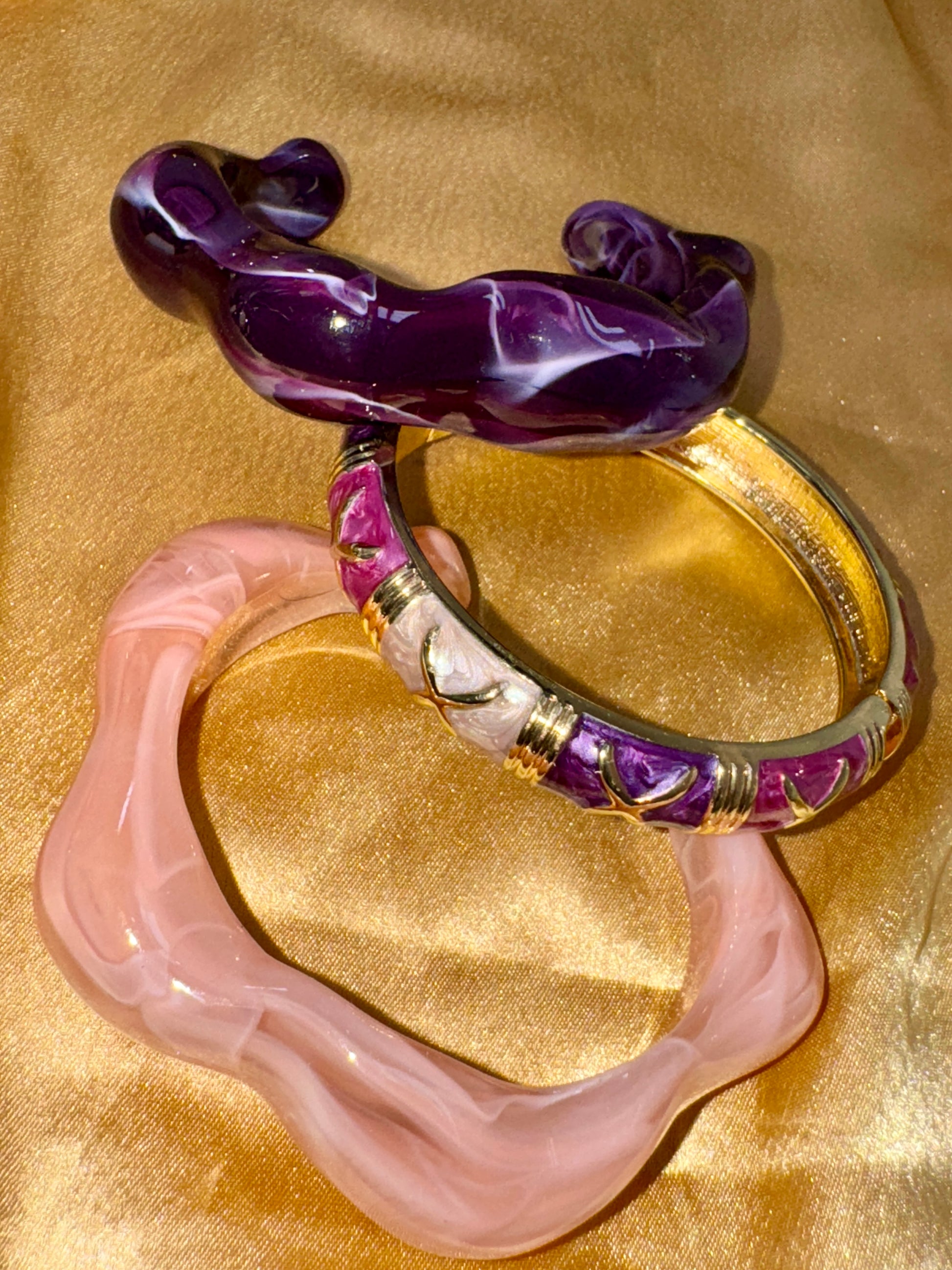 • 1 Deep Plum Sculpted Resin Bangle — fluid, glossy, rich and dramatic