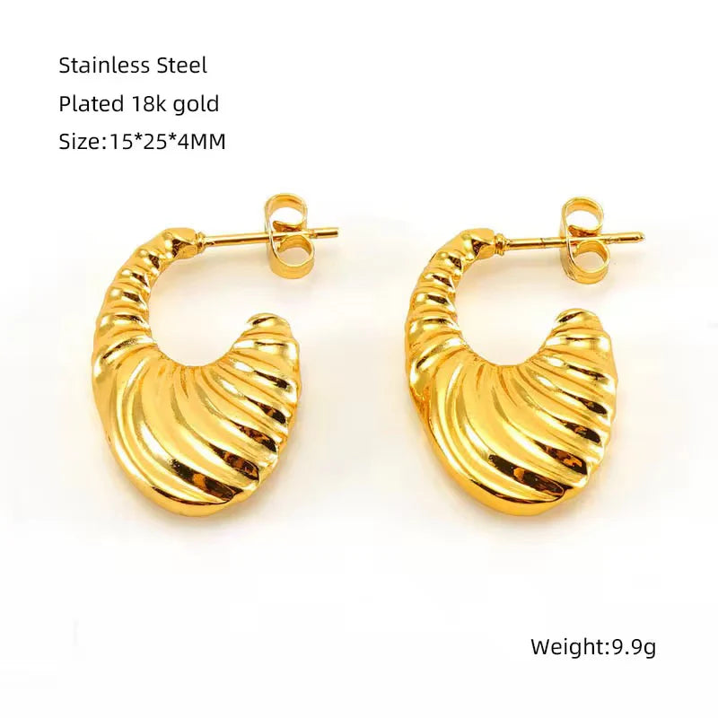 Meet OREA — a head-turning pair of chunky crescent studs that say confident, fearless, and unapologetically golden. With ridged texture and a sculpted silhouette, they’re made to shine solo or elevate your ear stack. Your new go-to for adding edge to elegance.