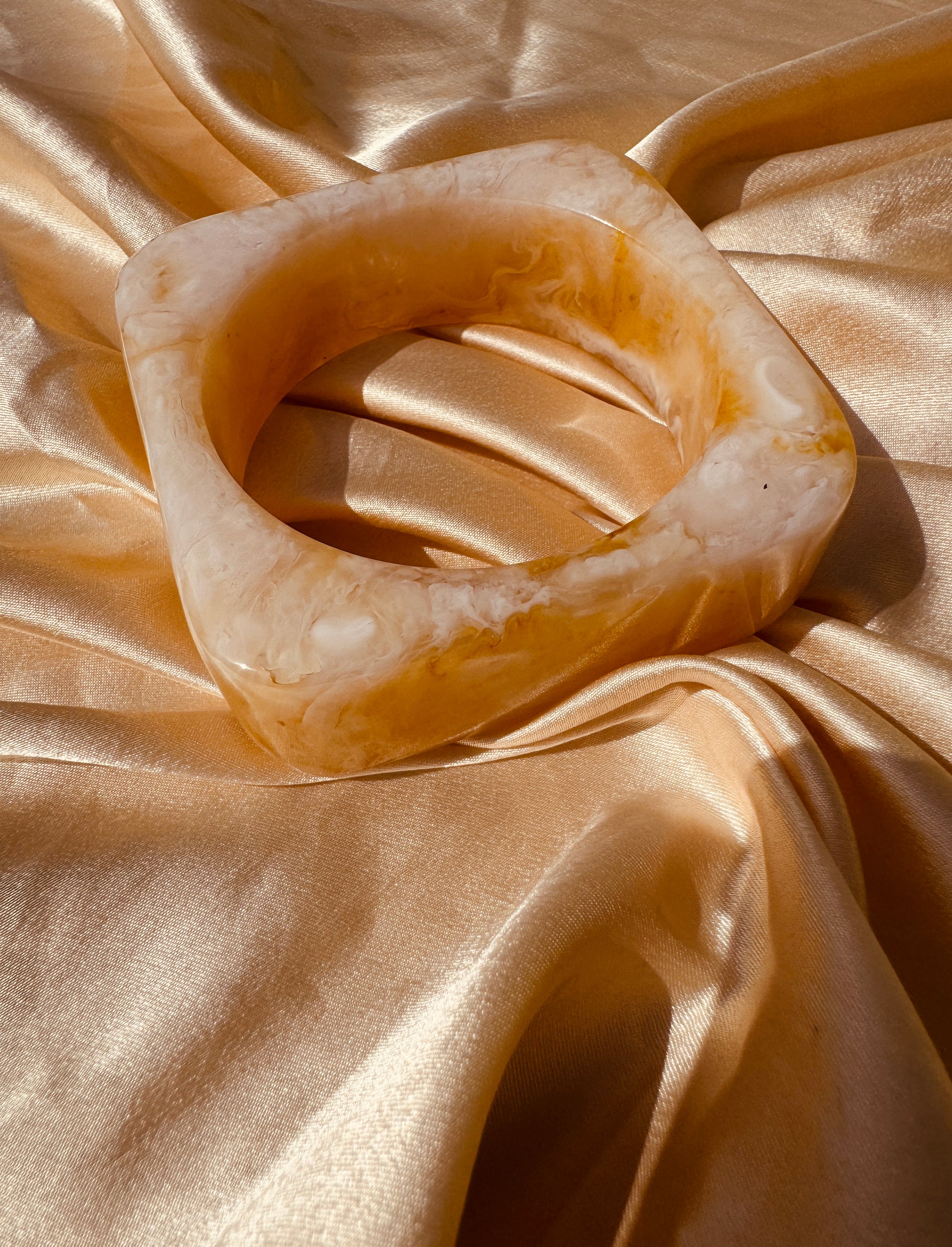 Radiant, sculptural, and effortlessly chic – Sola is your luxe resin bangle that captures the warmth of golden sunlight. With its unique square silhouette and glossy marbled finish, this piece brings a perfect blend of bold artistry and timeless sophistication. Designed for those who love statement jewelry with a modern twist, Sola elevates every look with a touch of golden charm.