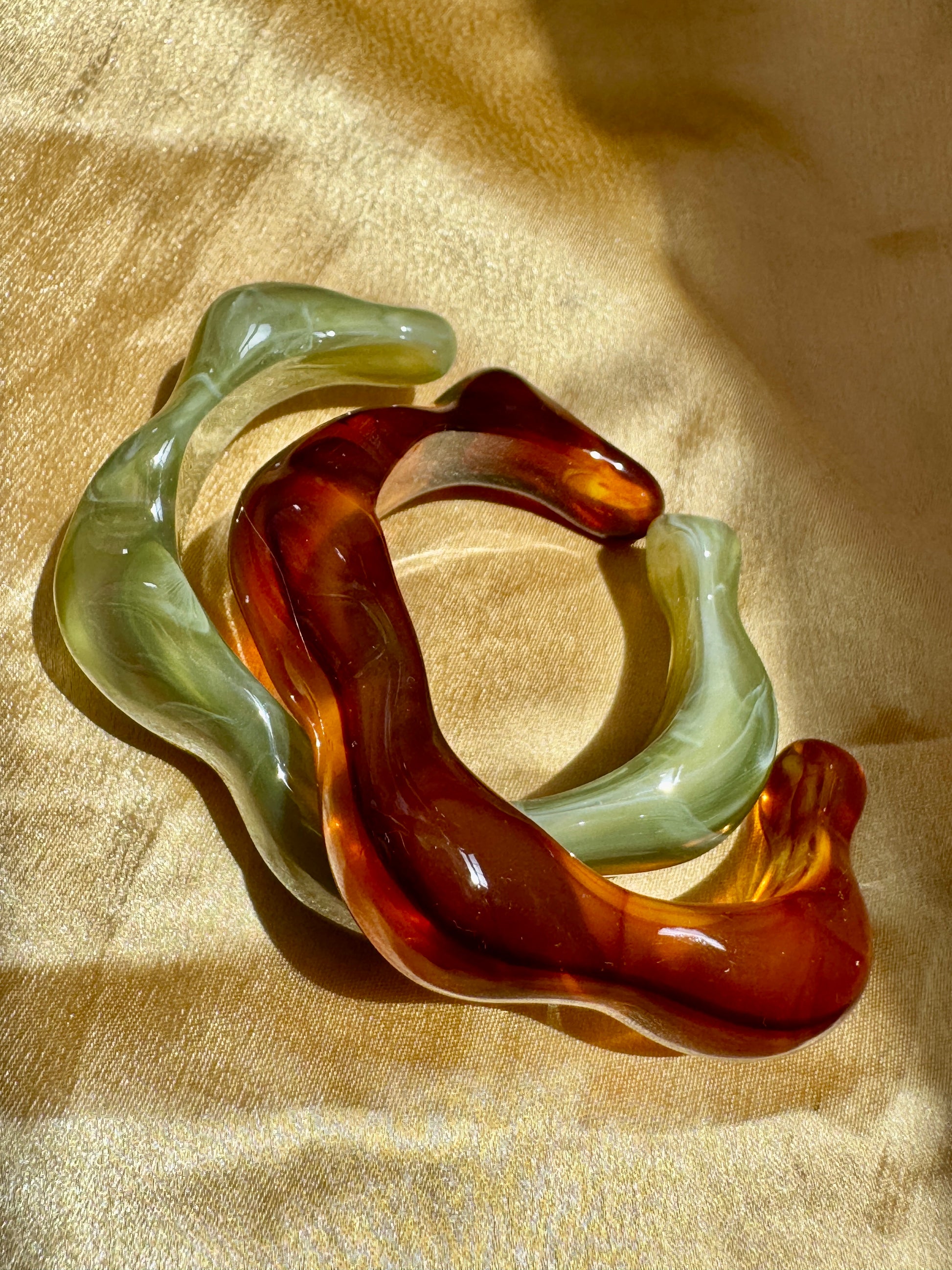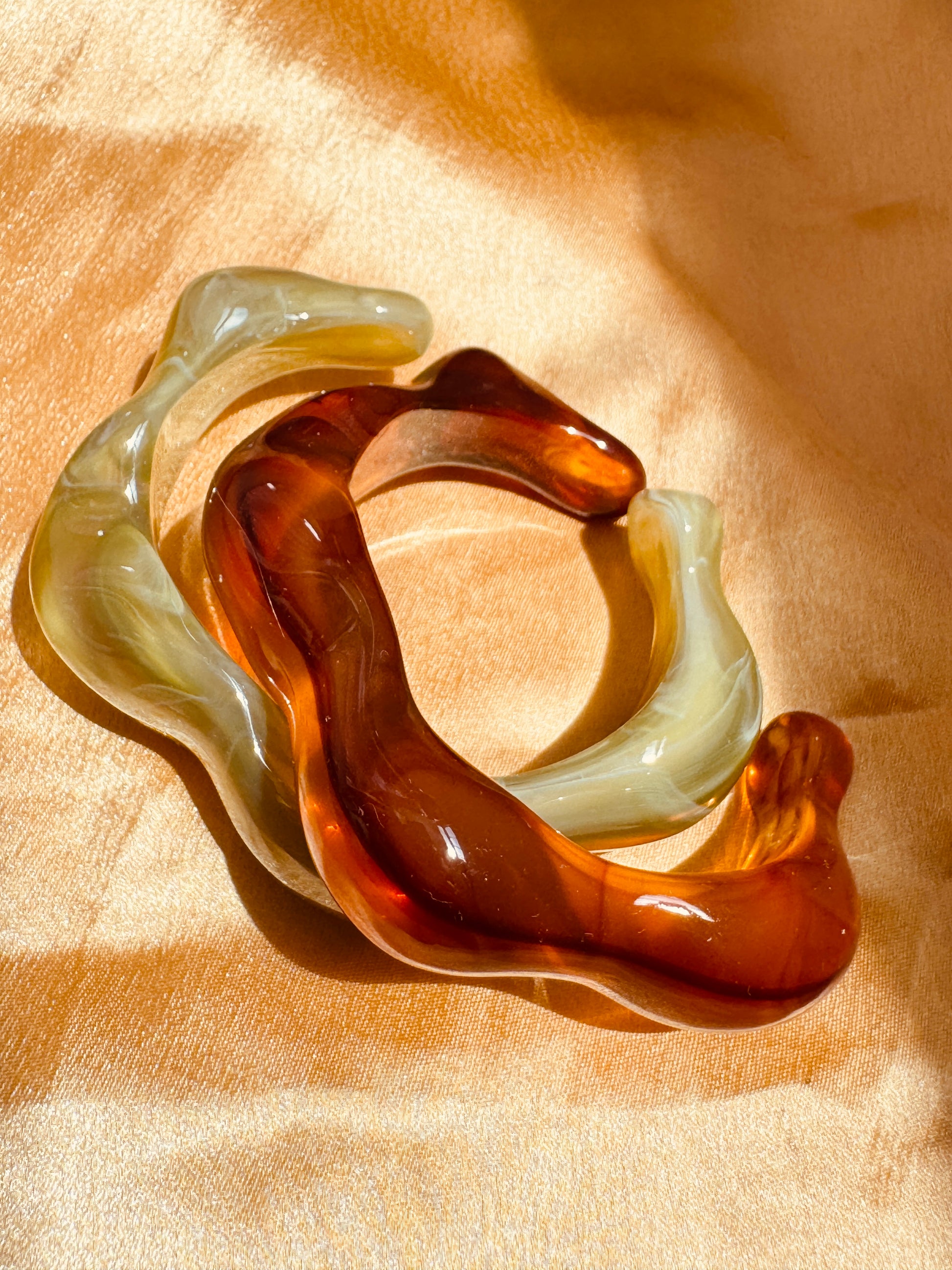 - Artistic resin cuff in amber & sage tones