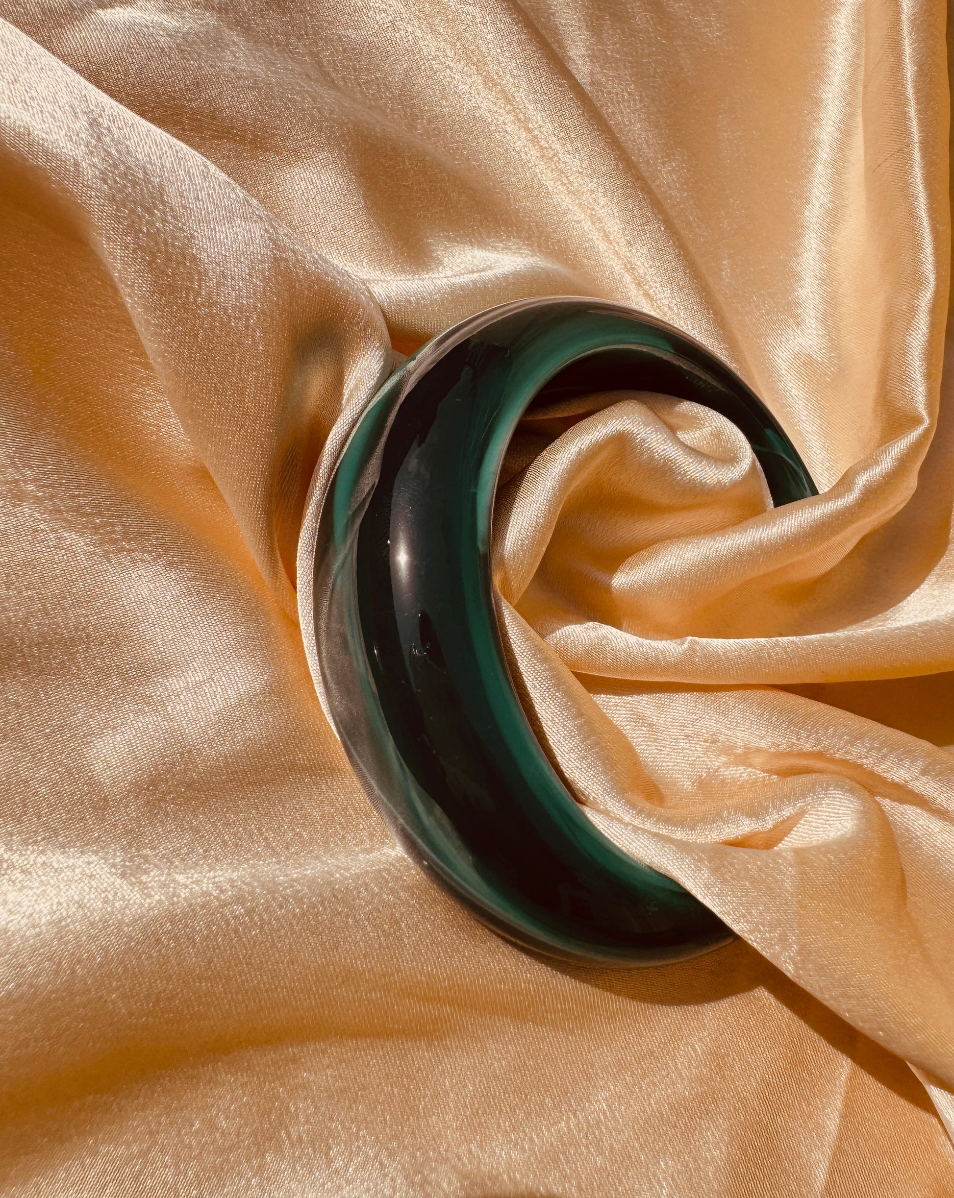 Bold, captivating, and irresistibly chic – Verena is your statement resin bangle, crafted in a rich emerald hue that radiates timeless elegance. Its sleek, sculpted silhouette and luminous glossy finish make it the perfect blend of modern artistry and classic sophistication. Whether worn solo or stacked, Verena turns minimal styling into a bold expression.